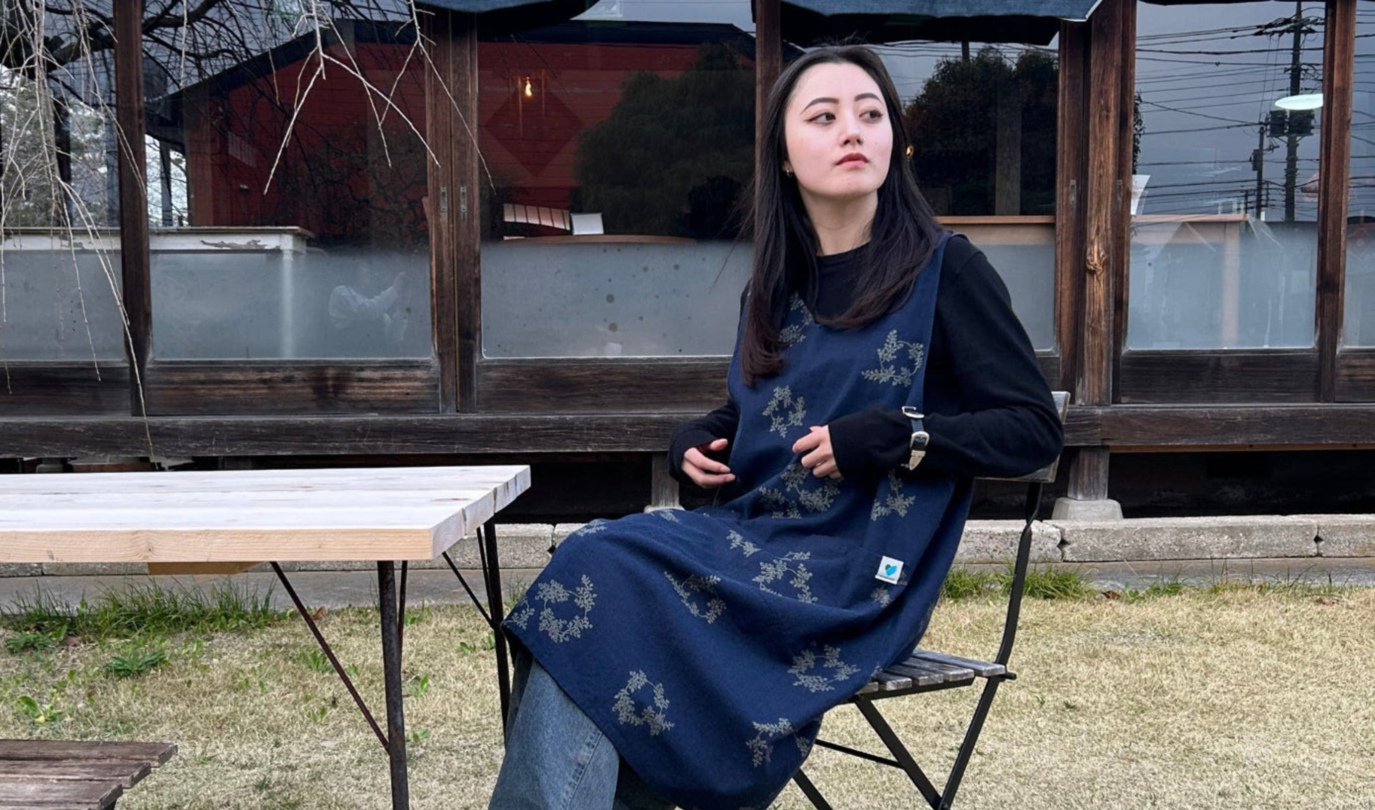藍染めエプロンドレス Indigo Dyed Apron/Pinafore使いやすさと伝統美を兼ね備えたエプロンドレスが誕生 キッチンだけでなくちょっとした外出にも最適 A newly designed apron/pinafore that blends practicality with traditional beauty,...