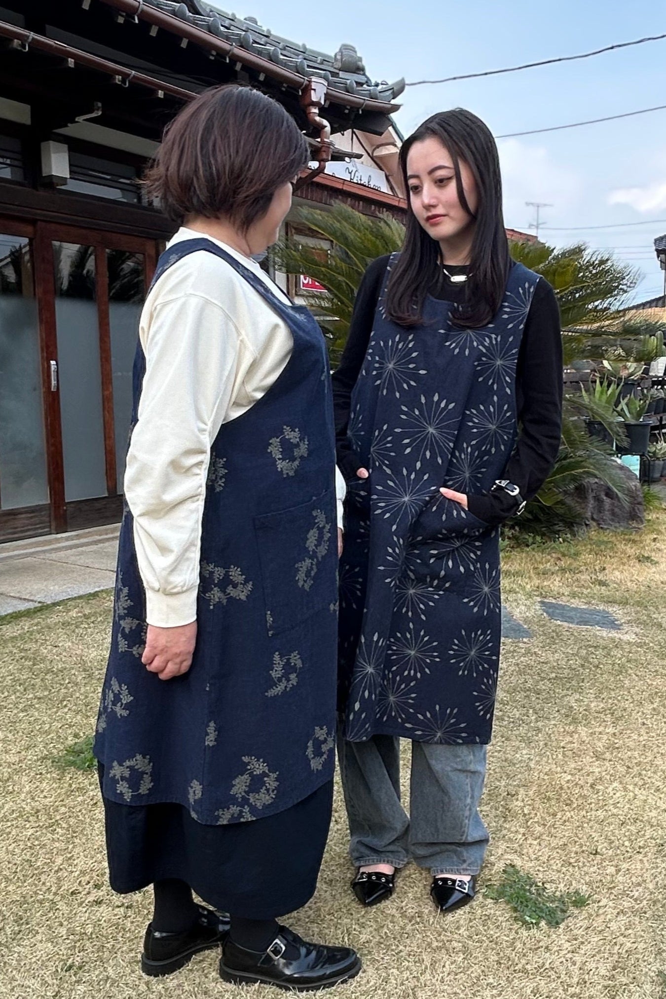 藍染めエプロンドレス(薄)花火 Indigo pinafore / apron