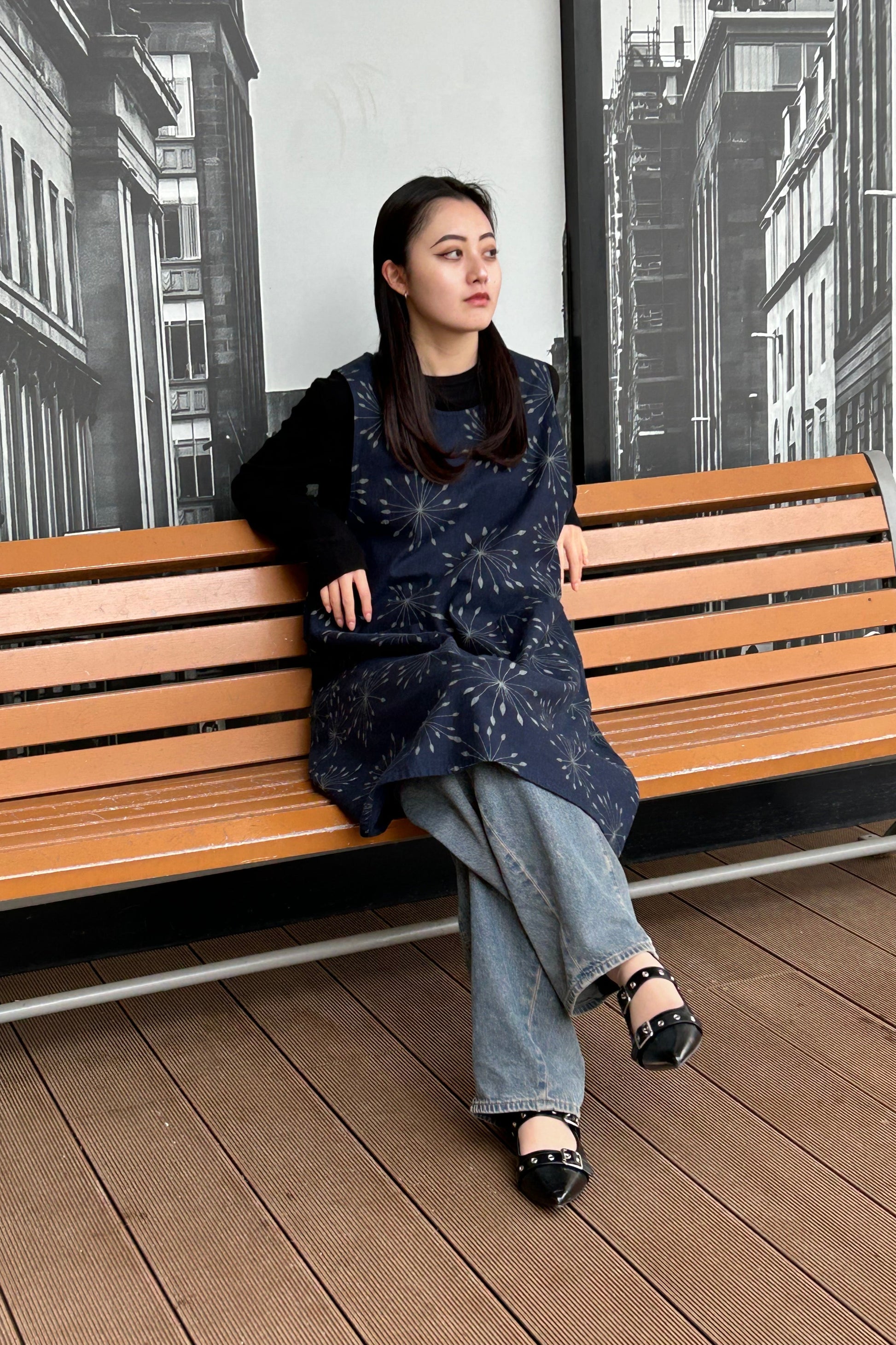 藍染めエプロンドレス(厚)花火 Indigo pinafore / apron